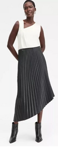 Faldas midi plisadas de mezclilla o de cuero: perfectas con botas o tacones bajos.